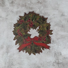 WREATH W/ RED BOW METAL WALL PLAQUE |